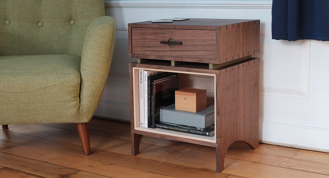 Created by Matt Kenney (MEK Woodworks), this stunning walnut table features through-dovetail joinery and contrasting painted details. Build your own version using Matt’s FREE plans and tutorial. Sign up for SawStop’s newsletter now to download the plans.