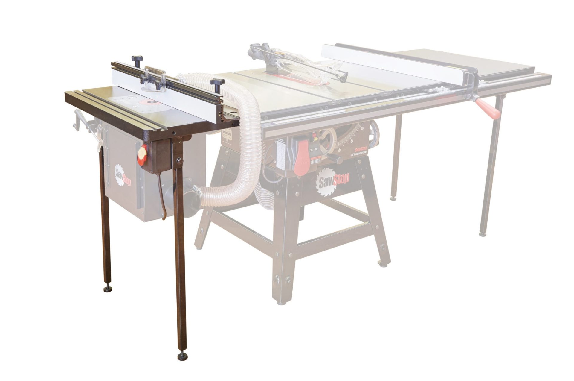 - Versatility-Depending on your shop configuration, there are two different mounting options. Save space by mounting the table in-line between the rails and replacing the existing extension table. For the 36" Professional Cabinet Saw, an optional cast iron filler table is available creating a full length cast iron table. The router table can also be mounted to the left of the saw, attaching to the left cast iron wing. The left mount setup is required for use with the Contractor Saw.