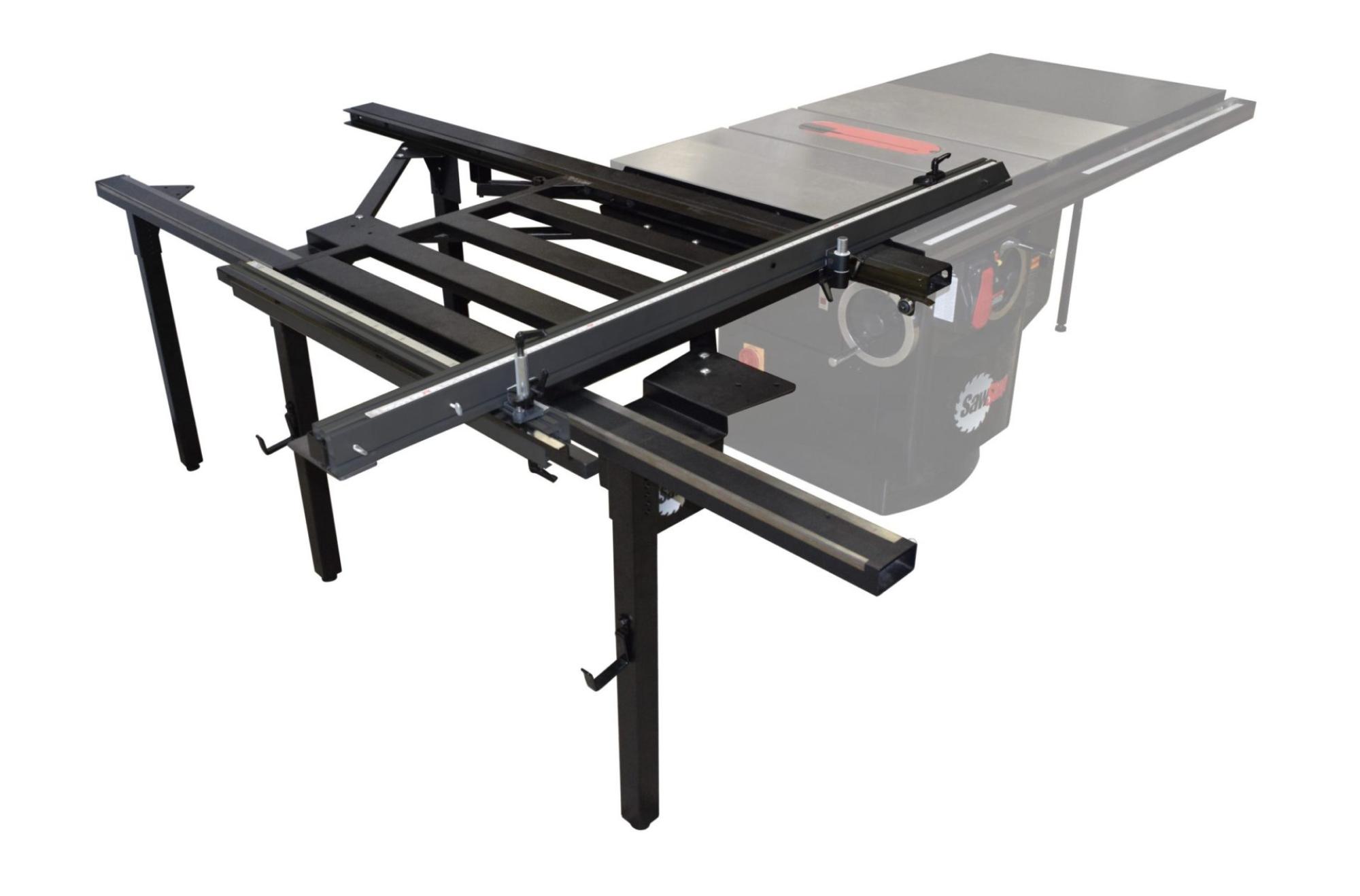 - Maximum Quality-This high-quality, rugged sliding table is constructed of durable steel and can accommodate sheet goods up to 350 lbs. Easily cut down sheet goods with the over-sized sled. The maximum crosscut capacity is 70". The 14 sealed, steel bearings and aluminum fence ensure smooth, reliable and repeatable cuts every time.