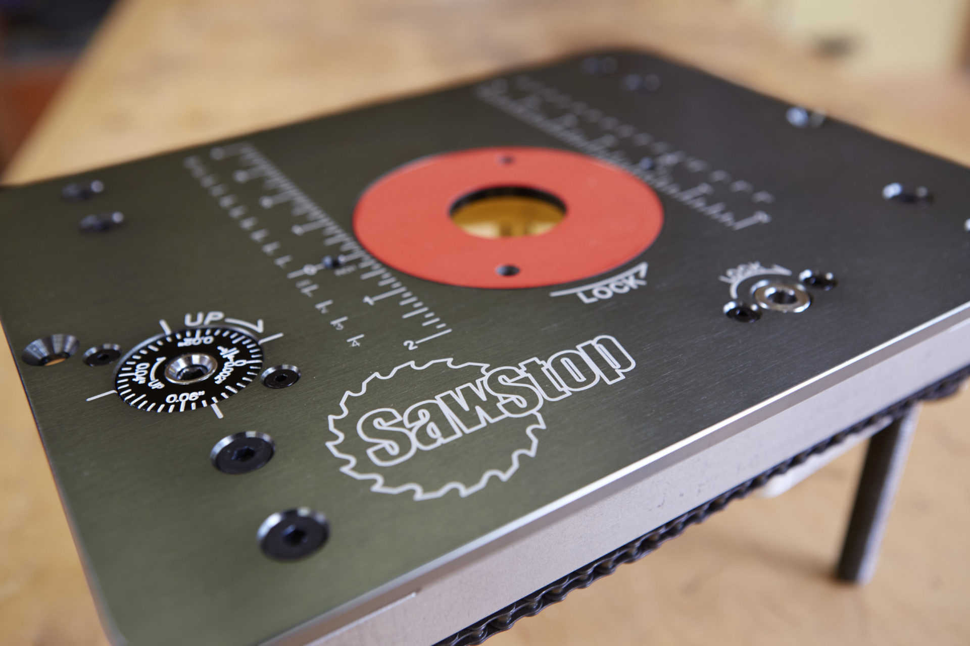 RT-LFTBuilt for heavy-duty precision, the SawStop Router Lift features a chain-synchronized four-post lifting system, positive lock, precision above-table elevation measurement and adjustments, and adaptive collars to fit multiple router sizes. 9.25″ x 11.75″ top plate fits perfectly into each SawStop Router Table.